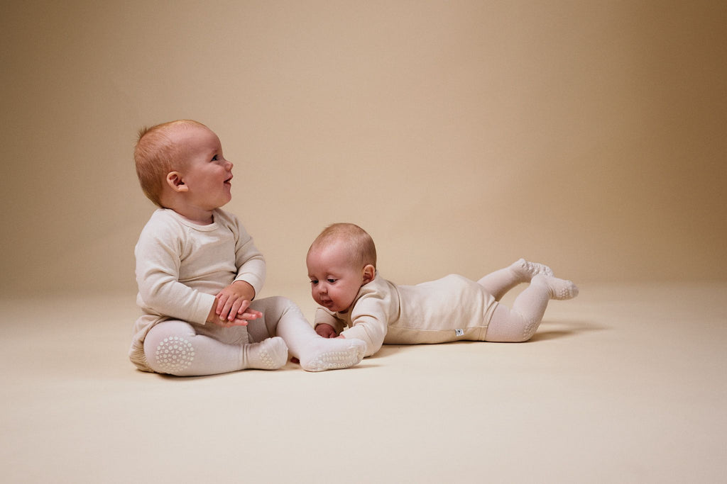 • Non slip crawling tights with grip for babies and toddlers Organic Cotton - Off White